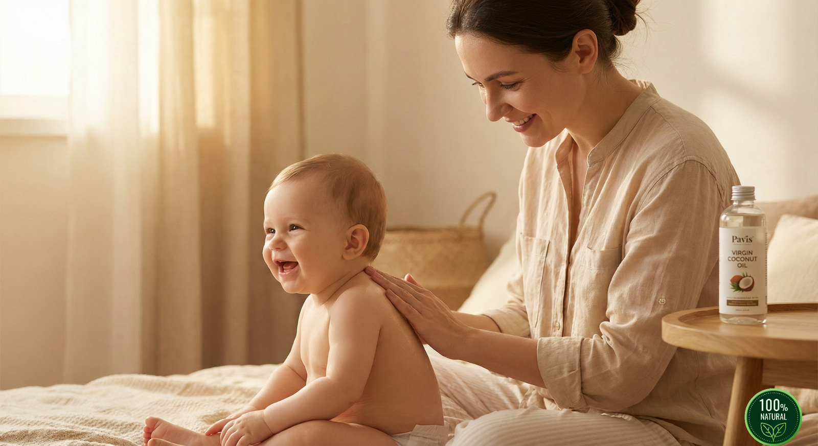 "100% Edible-Grade Virgin Coconut Oil (Uruttu Velichenna) & Ragi. Safe for newborn massage & diet".