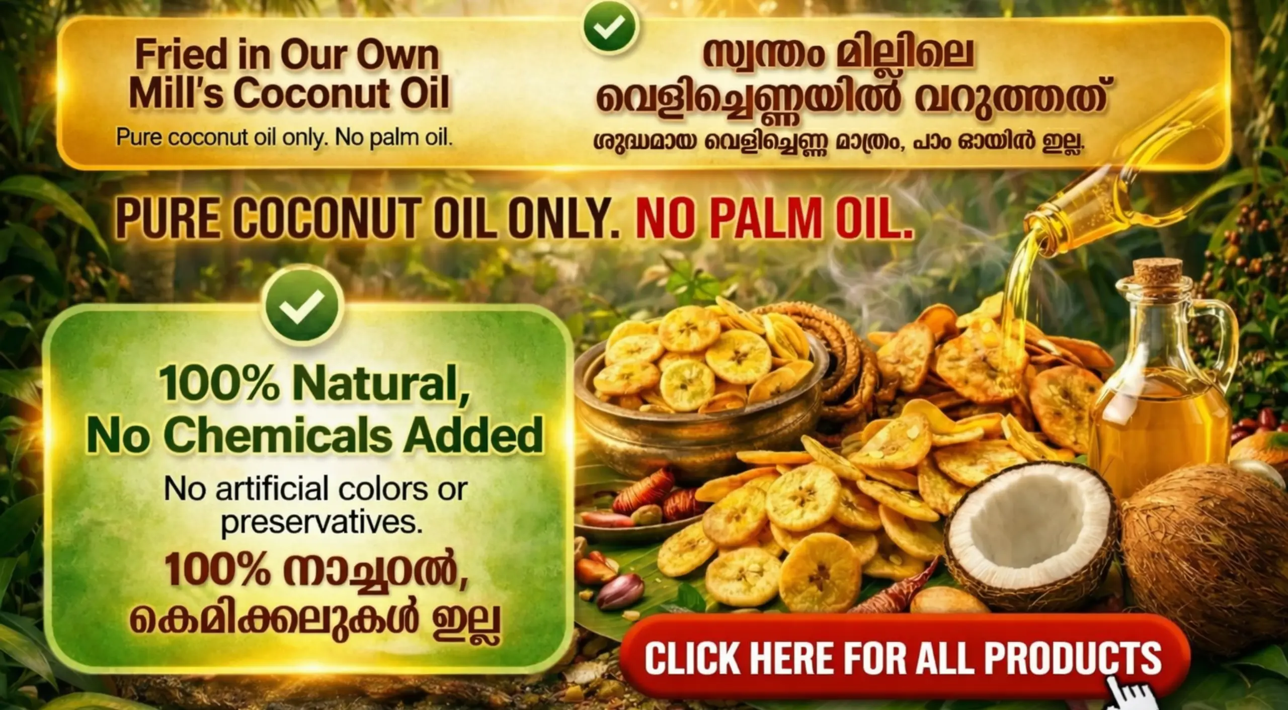 The Ultimate Kerala Snack Factory – Prepared Exclusively in Our Own Cold Pressed Coconut Oil