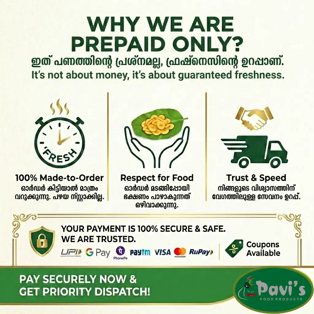 ​Authentic & Pure: Made in our government-recognized women-led unit in Alappuzha, ensuring home-style hygiene and taste.