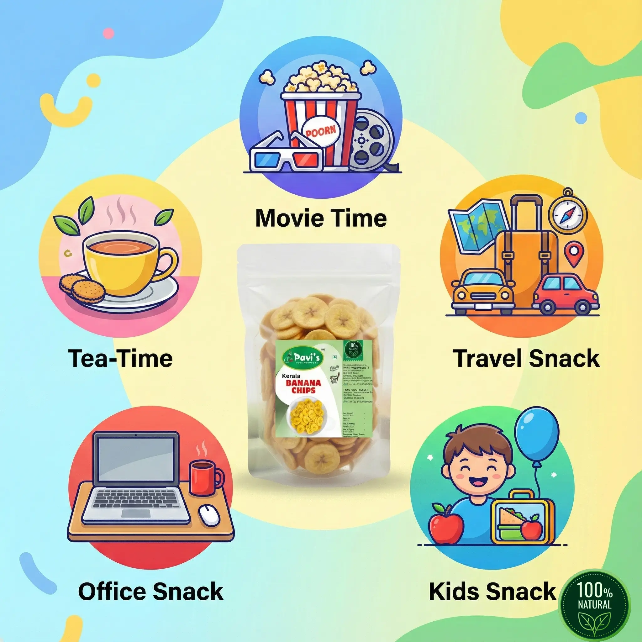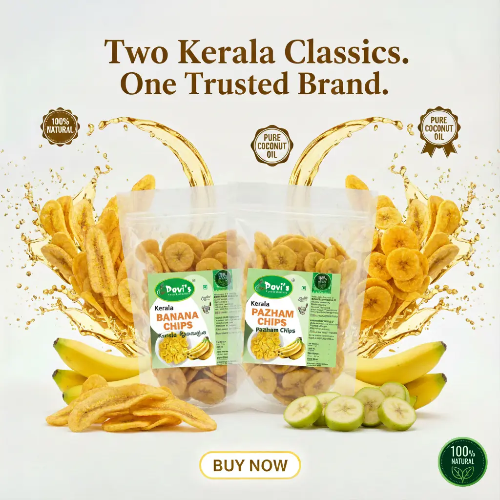 Pavis Banana Chips are made from premium Kerala Nendran bananas sourced directly from trusted farmers.