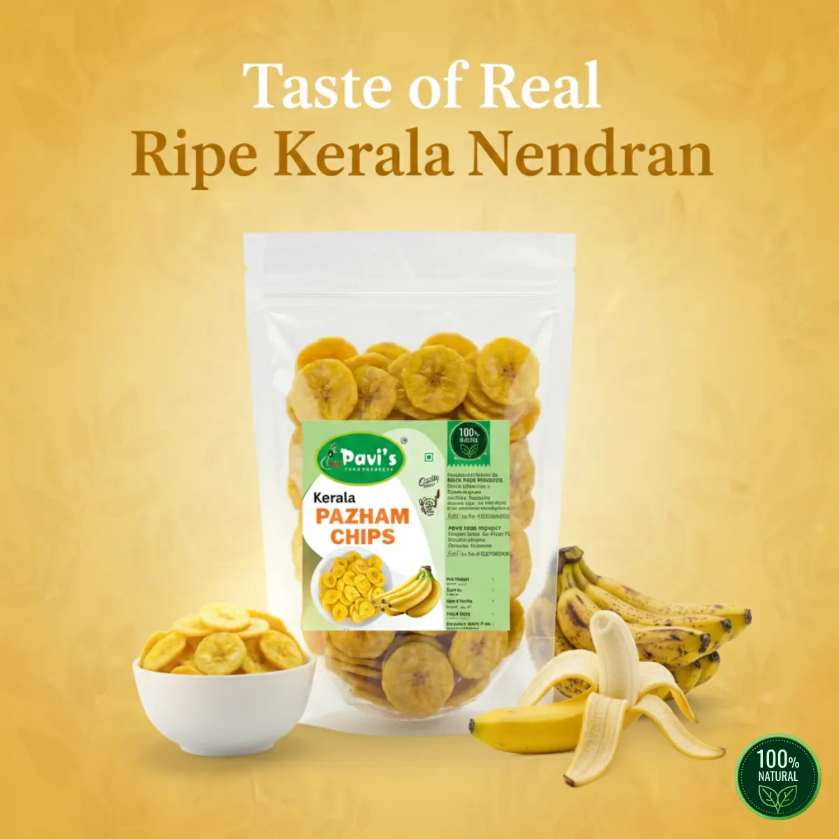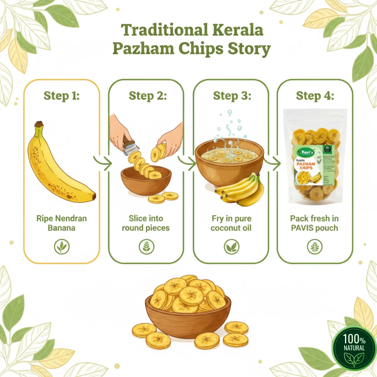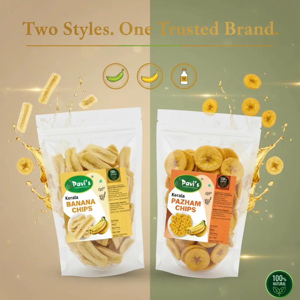 This gives Pavis Pazham Chips a clean taste, natural sweetness and a safe, pure snacking experience your family can trust.