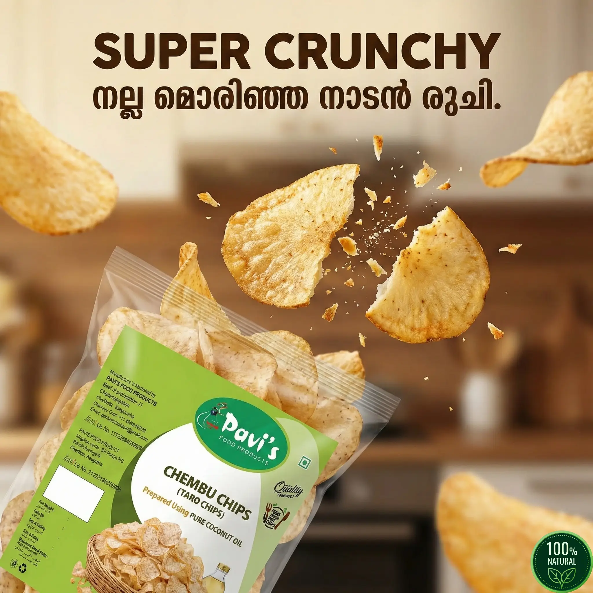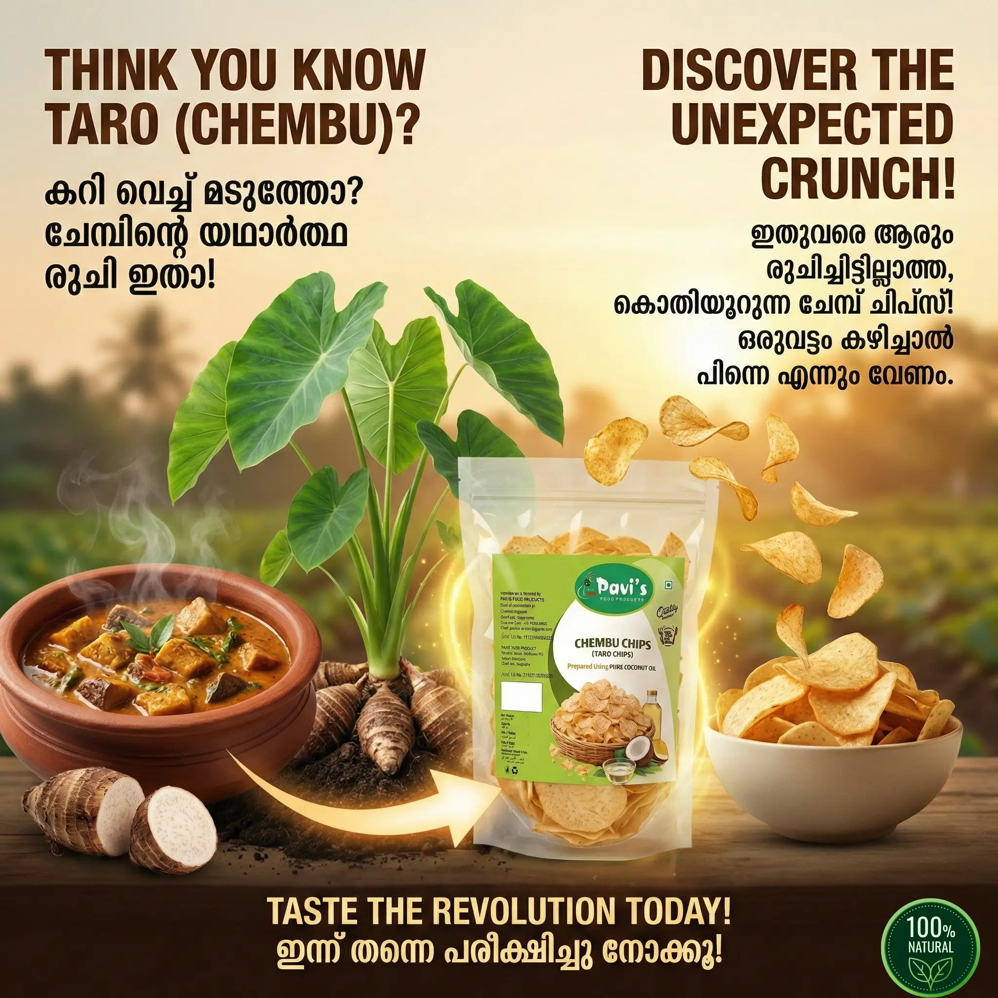 Forget ordinary potato chips. Experience the King of Crunch – Authentic Kerala Taro Chips. At Pavis Food Products, we don’t mass-produce snacks; we preserve tradition.